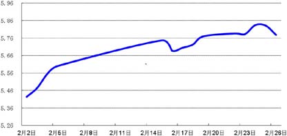 受春节期间美元走弱影响,节后美元对人民币中间价相应走低,即期市场成交价在节后第一个交易日大幅下跌,随后几日收复部分跌幅。周五,美元对人民币收报6.5204,较节前贬值0.75%。
