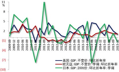 美国经济增长略显疲态,市场关注美联储加息节奏。20161月非农就业人口增长15.1万,不及预期的19万,但失业率降至4.9%,为2008年以来新低;1月密歇根大学消费者信心指数终值92,略低于预期的93.0,亦低于1月初值93.31ISM制造业指数48.2,不及预期的48.5,但略高于12月的48.01月成屋销售总数年化547万户,高于预期的532万户,创20072月以来第二高位。美国四季度实际GDP年化季环比修正值为增长1.0%,远超市场此前预期的增长0.4%,也好于初值增长0.7%。综观整个2015年,补库存推动了全年GDP,也最终让四季度的美国经济免于收缩。未来还需关注美联储的加息节奏。