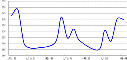 上周,因美联储公布的3月货币政策会议纪要偏鸽派,打压美元,加之市场避险情绪占主导,拉动国际金价上涨,周五收盘于1240.01美元/盎司,较前一周上涨1.46%。