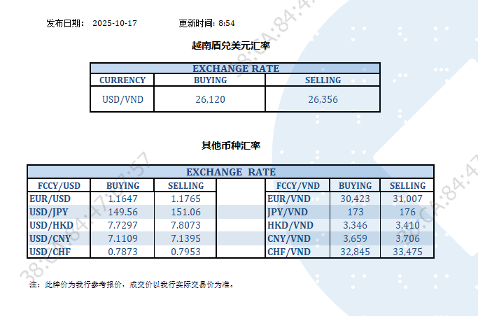 今日汇市 2025-10-17